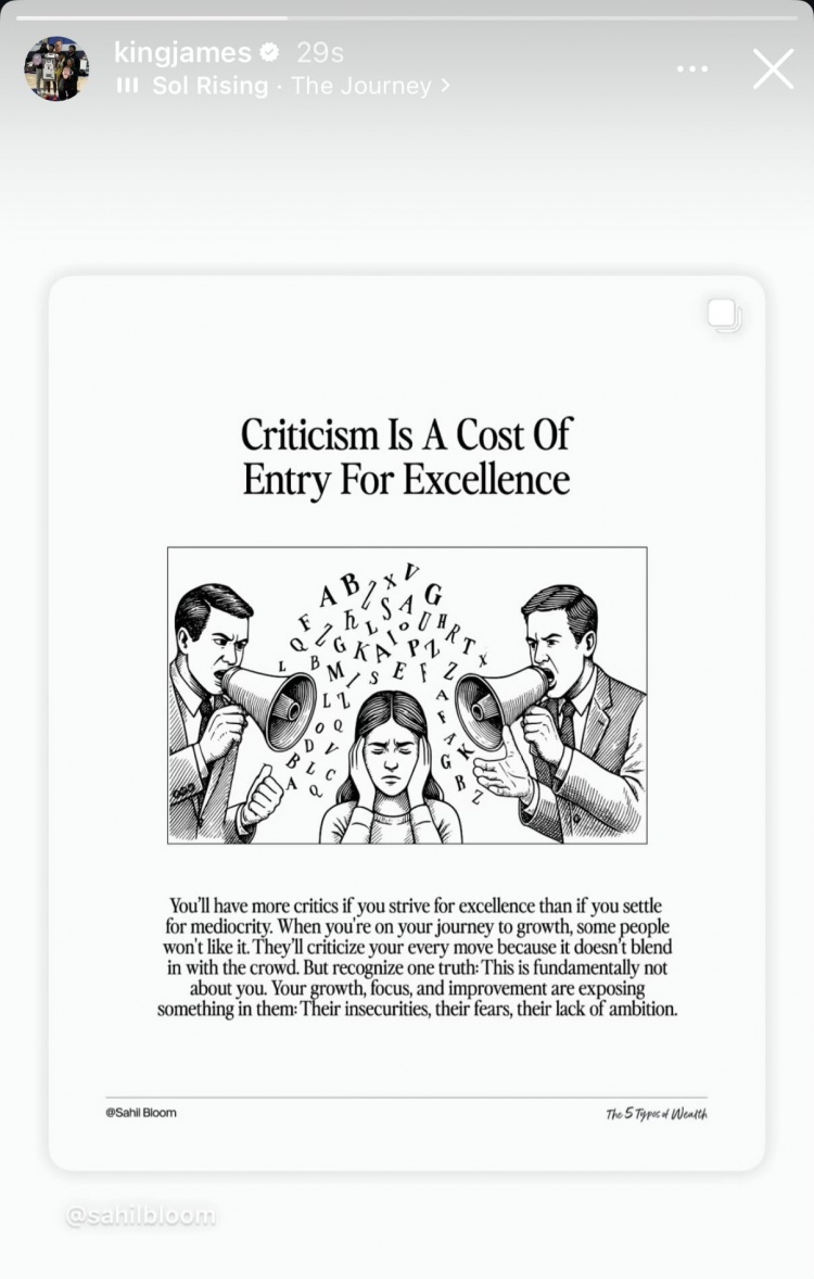 Hôm nay, tiền đạo James của Lakers đã cập nhật Câu chuyện trên Instagram của anh ấy.